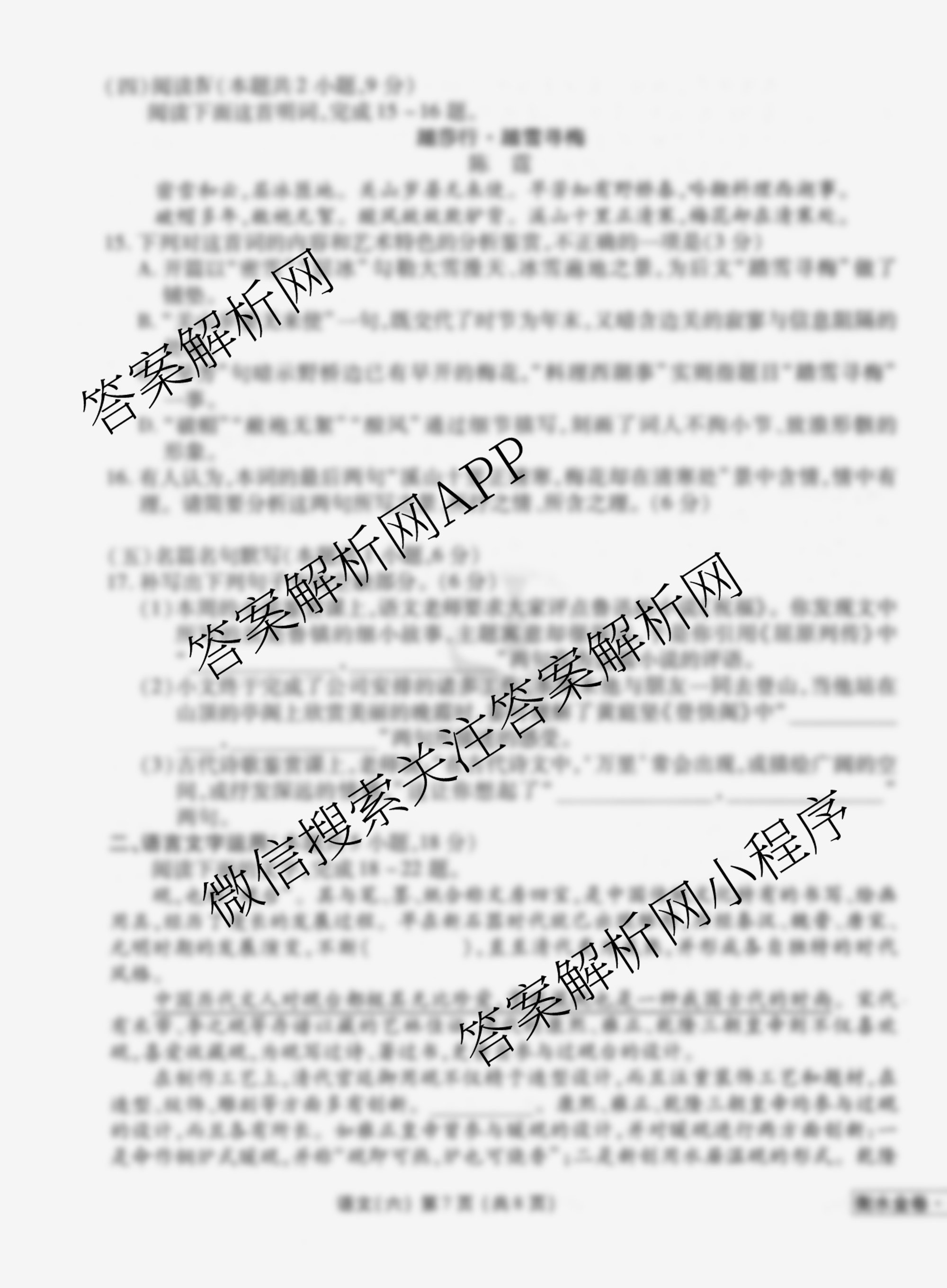 衡水金卷先享题·调研卷·2026年普通高等学校招生全国统一考试模拟试题(六)6语文试题由衡中同卷整理,获取更多衡水金卷先享题答案解析,请在各大应用商店搜索下载答案解析网APP。