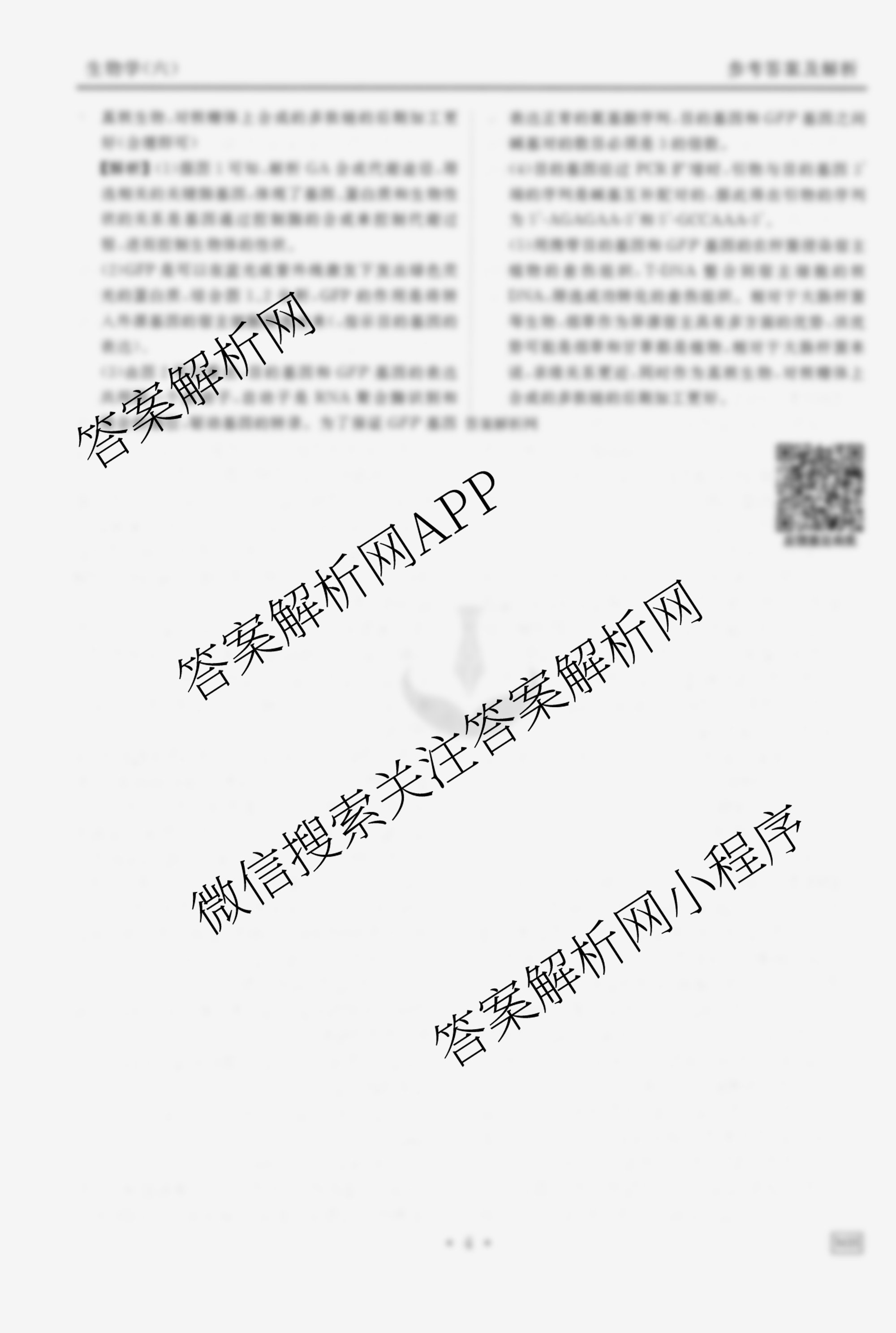 衡水金卷先享题·调研卷·2026年普通高中学业水平选择性考试模拟(六)6生物(MH)答案由衡中同卷整理,获取更多衡水金卷先享题答案解析,请在各大应用商店搜索下载答案解析网APP。