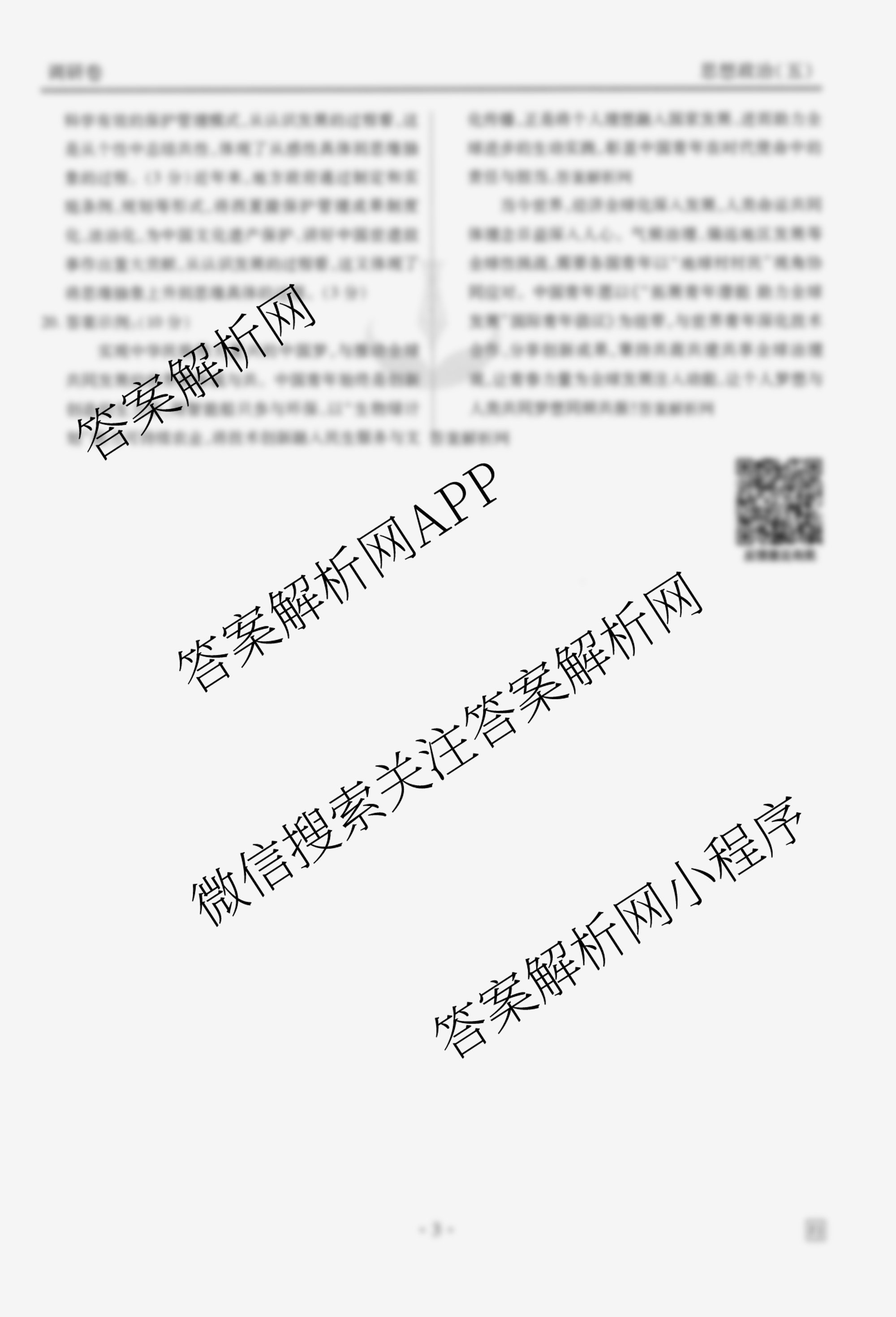 衡水金卷先享题·调研卷·2026年普通高中学业水平选择性考试模拟(五)5政治(FJ)答案由衡中同卷整理,获取更多衡水金卷先享题答案解析,请在各大应用商店搜索下载答案解析网APP。