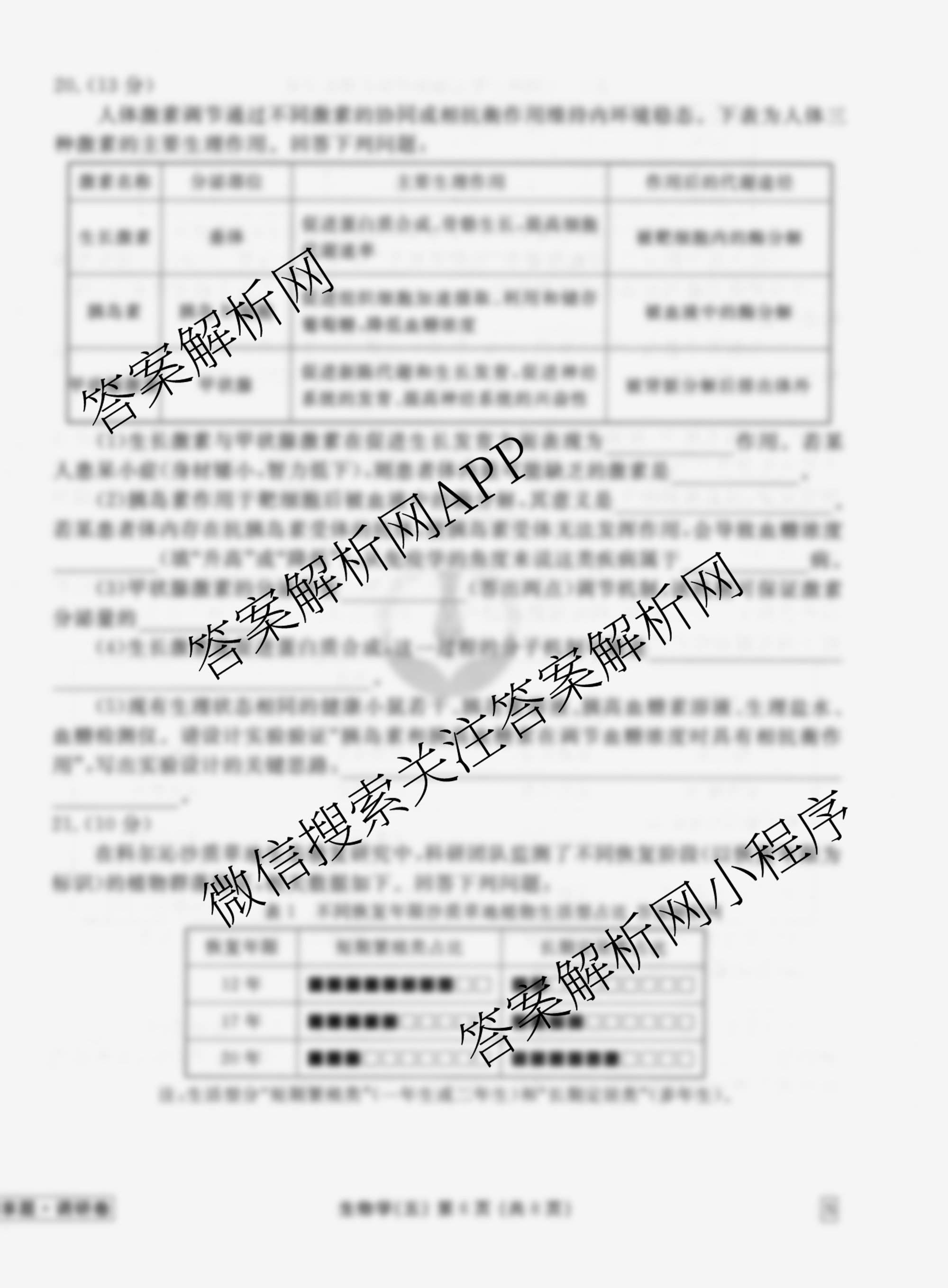衡水金卷先享题·调研卷·2026年普通高中学业水平选择性考试模拟(五)5生物(S)试题由衡中同卷整理,获取更多衡水金卷先享题答案解析,请在各大应用商店搜索下载答案解析网APP。