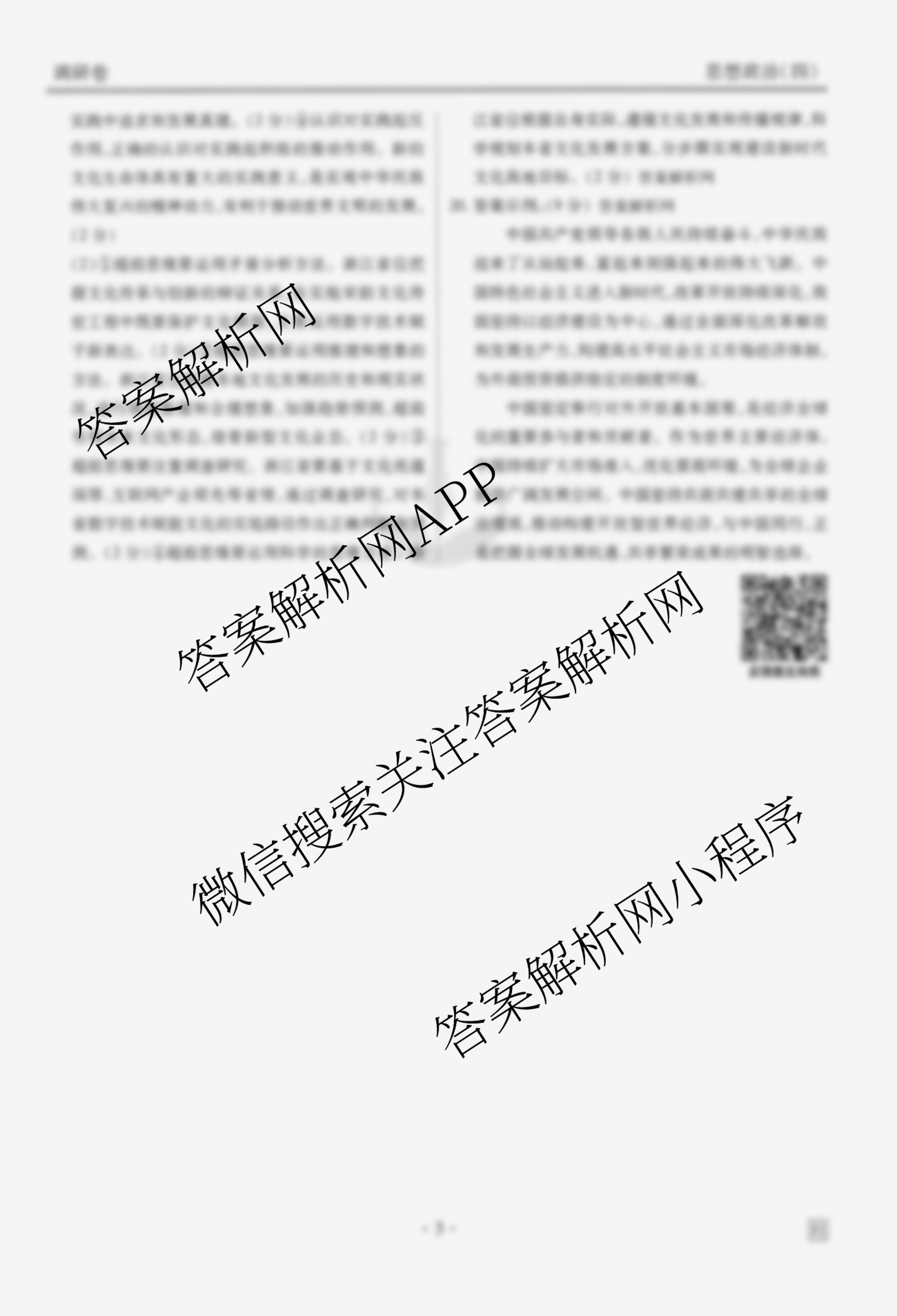 衡水金卷先享题·调研卷·2026年普通高中学业水平选择性考试模拟(四)4政治(FJ)答案由衡中同卷整理,获取更多衡水金卷先享题答案解析,请在各大应用商店搜索下载答案解析网APP。