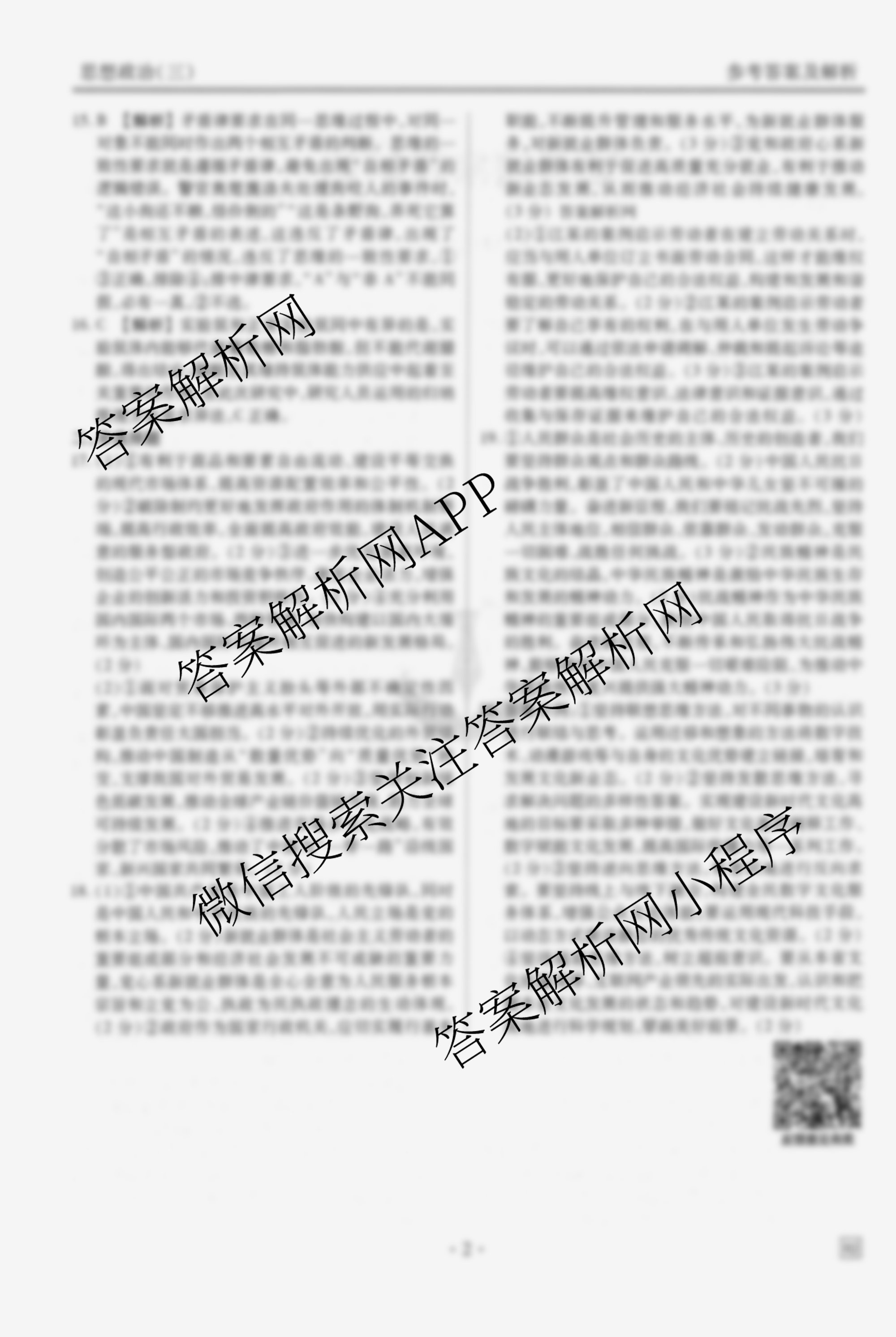 衡水金卷先享题·调研卷·2026年普通高中学业水平选择性考试模拟(三)3政治(HJ)答案由衡中同卷整理,获取更多衡水金卷先享题答案解析,请在各大应用商店搜索下载答案解析网APP。