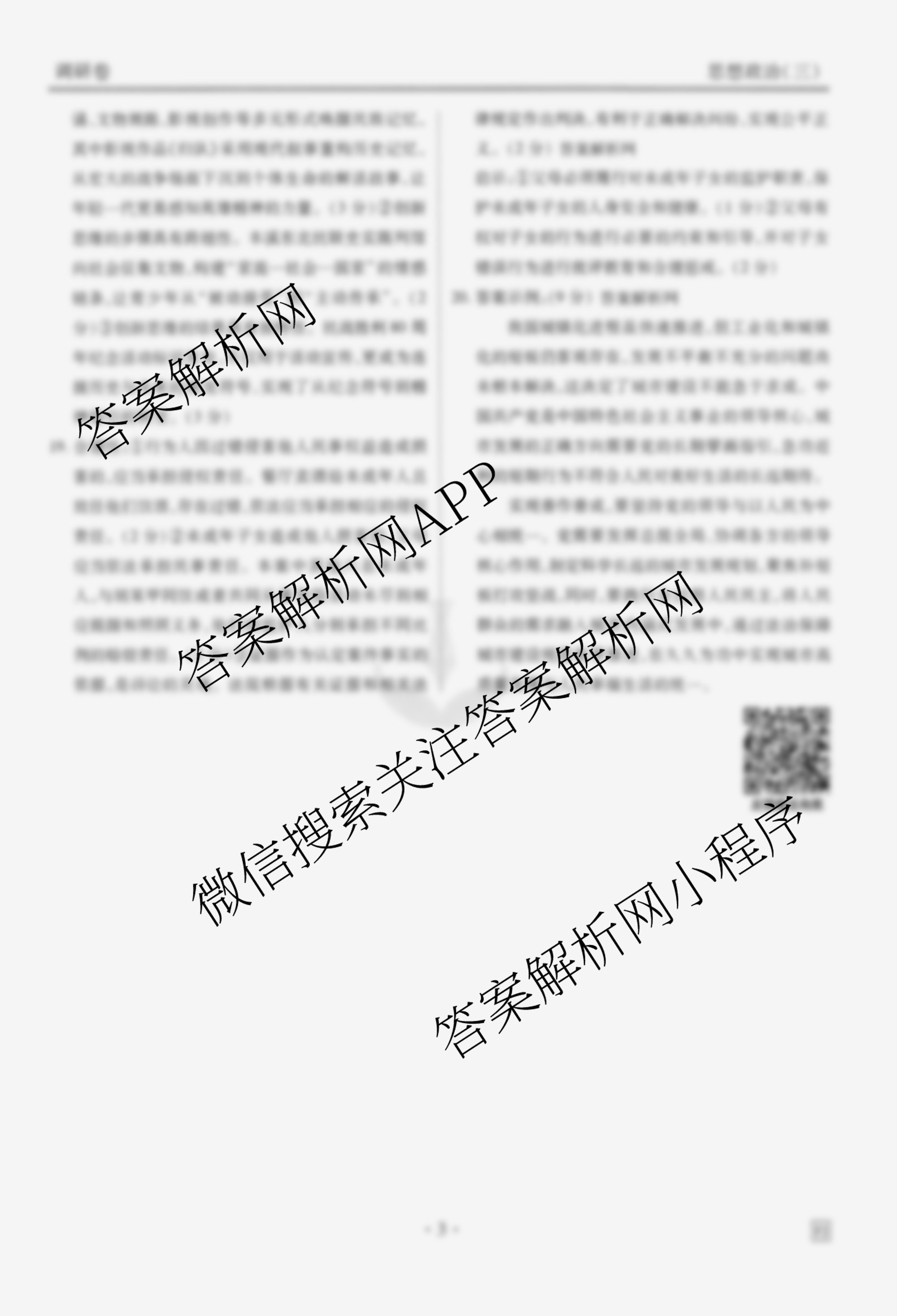 衡水金卷先享题·调研卷·2026年普通高中学业水平选择性考试模拟(三)3政治(FJ)答案由衡中同卷整理,获取更多衡水金卷先享题答案解析,请在各大应用商店搜索下载答案解析网APP。