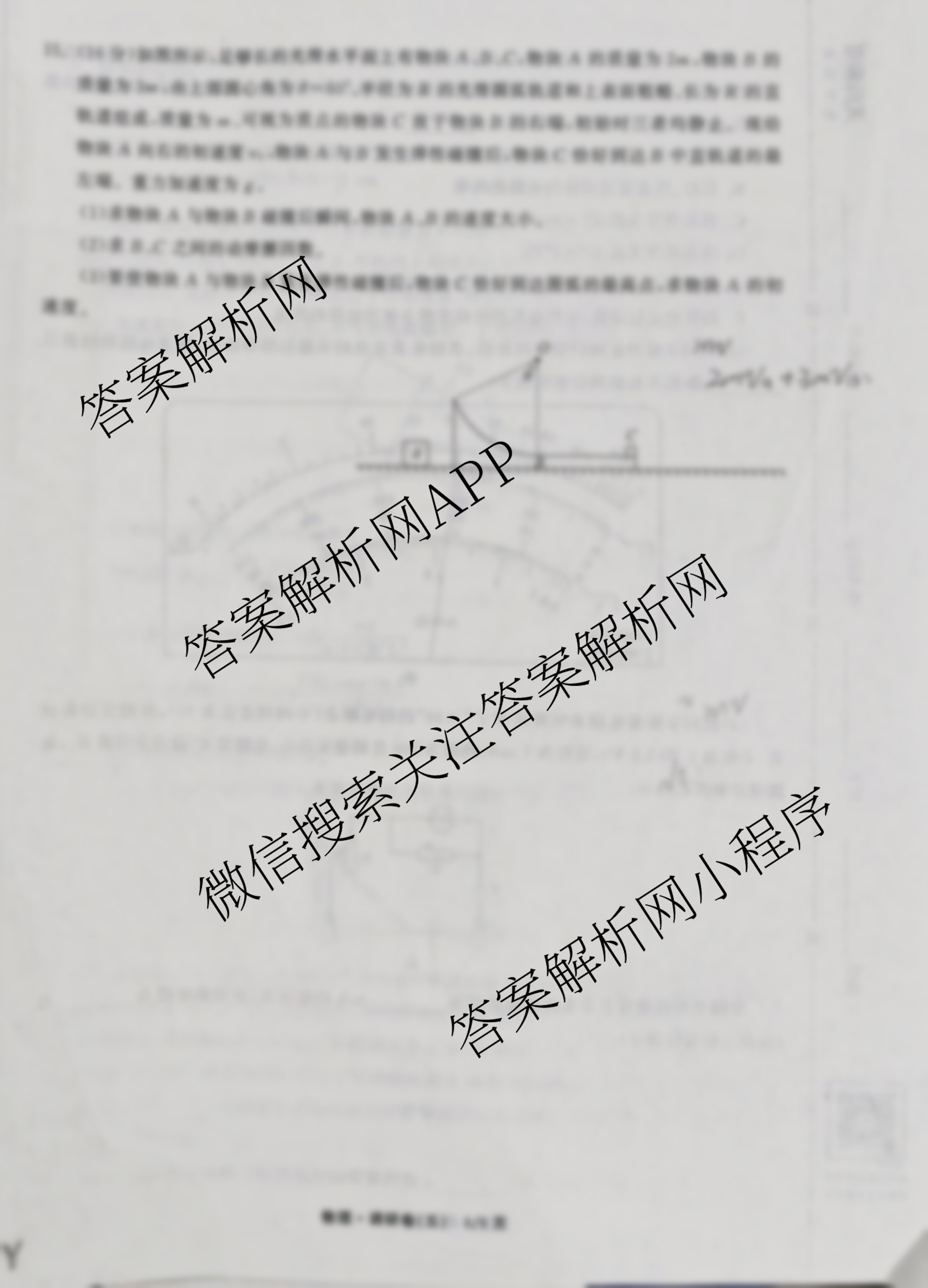 - [高三]天舟高考(衡中同卷)2026年普通高中学业水平选择性考试模拟调研卷(五)5物理(XB专版)答案