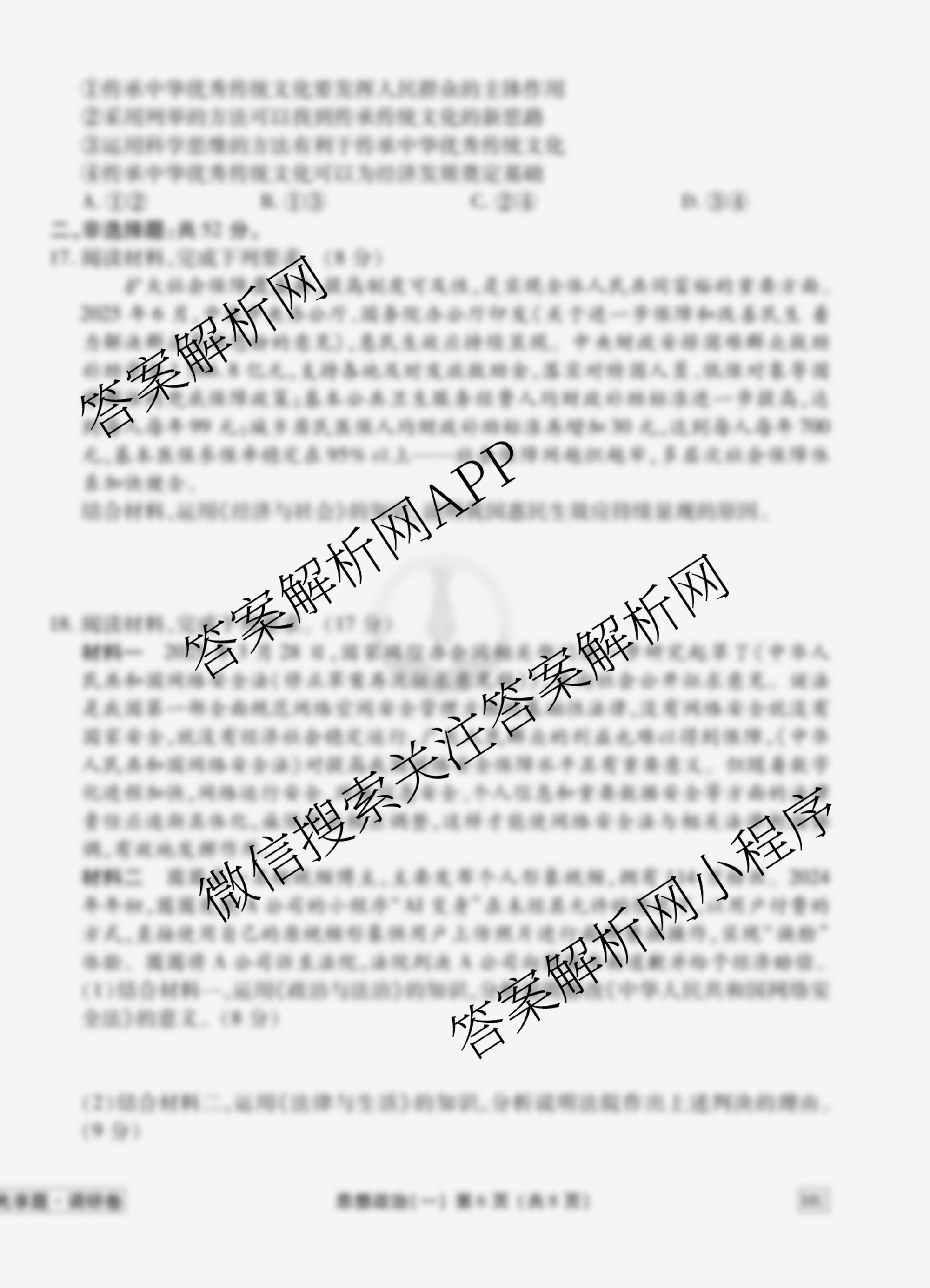 衡水金卷先享题·调研卷·2026年普通高中学业水平选择性考试模拟试题(一)1政治(HU)试题由衡中同卷整理,获取更多衡水金卷先享题答案解析,请在各大应用商店搜索下载答案解析网APP。