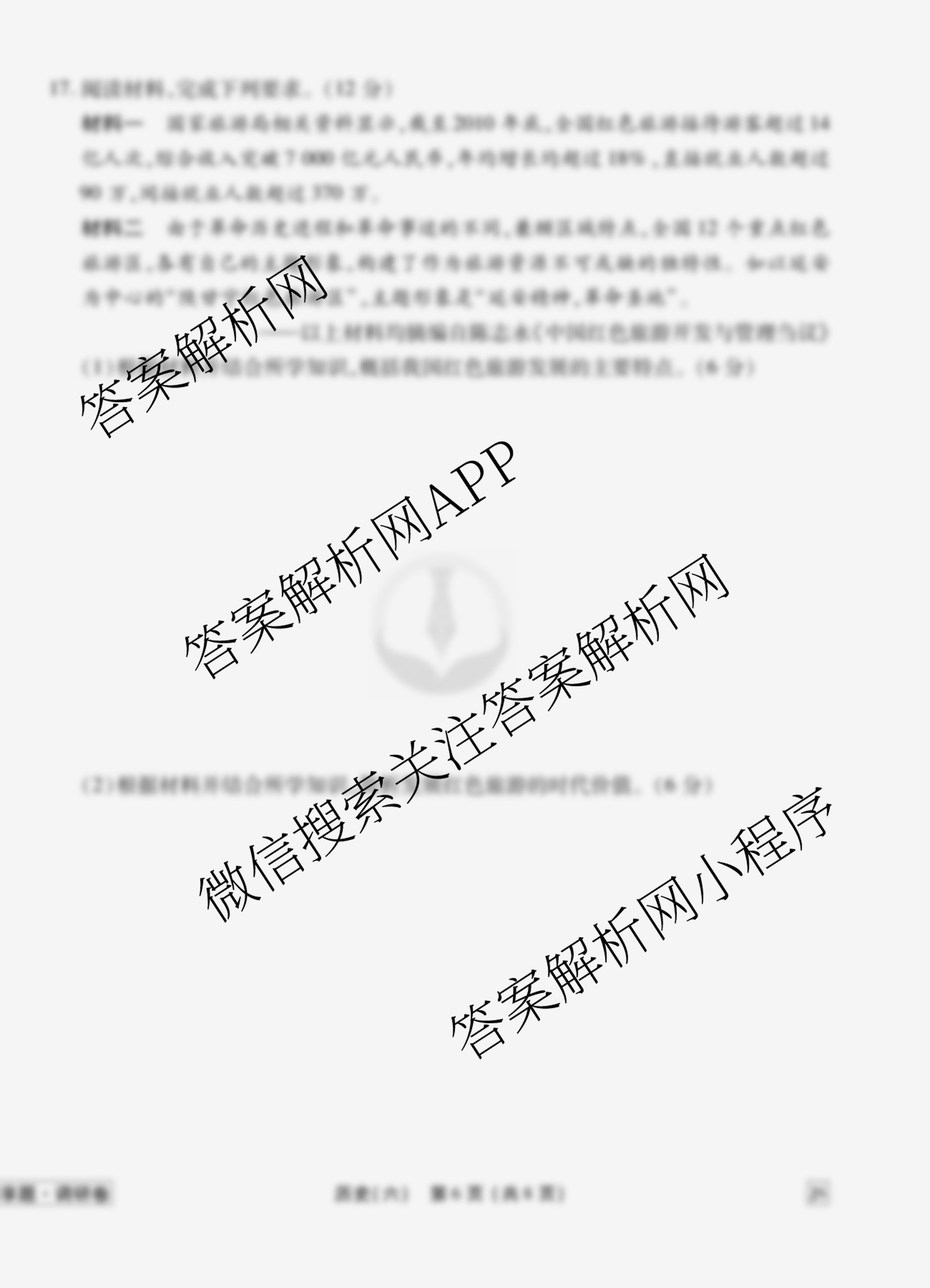 衡水金卷先享题·调研卷·2026年普通高中学业水平选择性考试模拟试题(六)6历史(JS)试题由衡中同卷整理,获取更多衡水金卷先享题答案解析,请在各大应用商店搜索下载答案解析网APP。