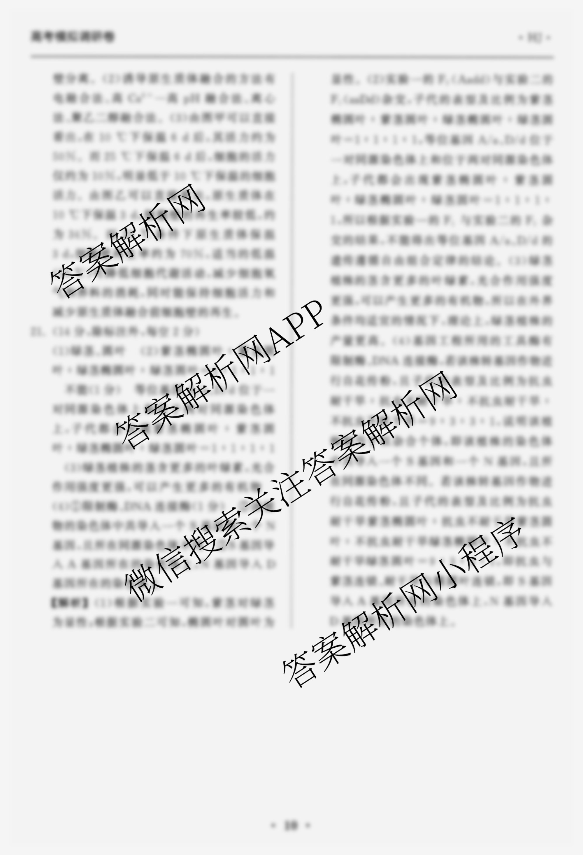 天舟高考衡中同卷·2026年普通高中学业水平选择性考试模拟调研卷(二)2生物(HJ)答案由衡中同卷整理,获取更多衡中同卷答案解析,请在各大应用商店搜索下载答案解析网APP。