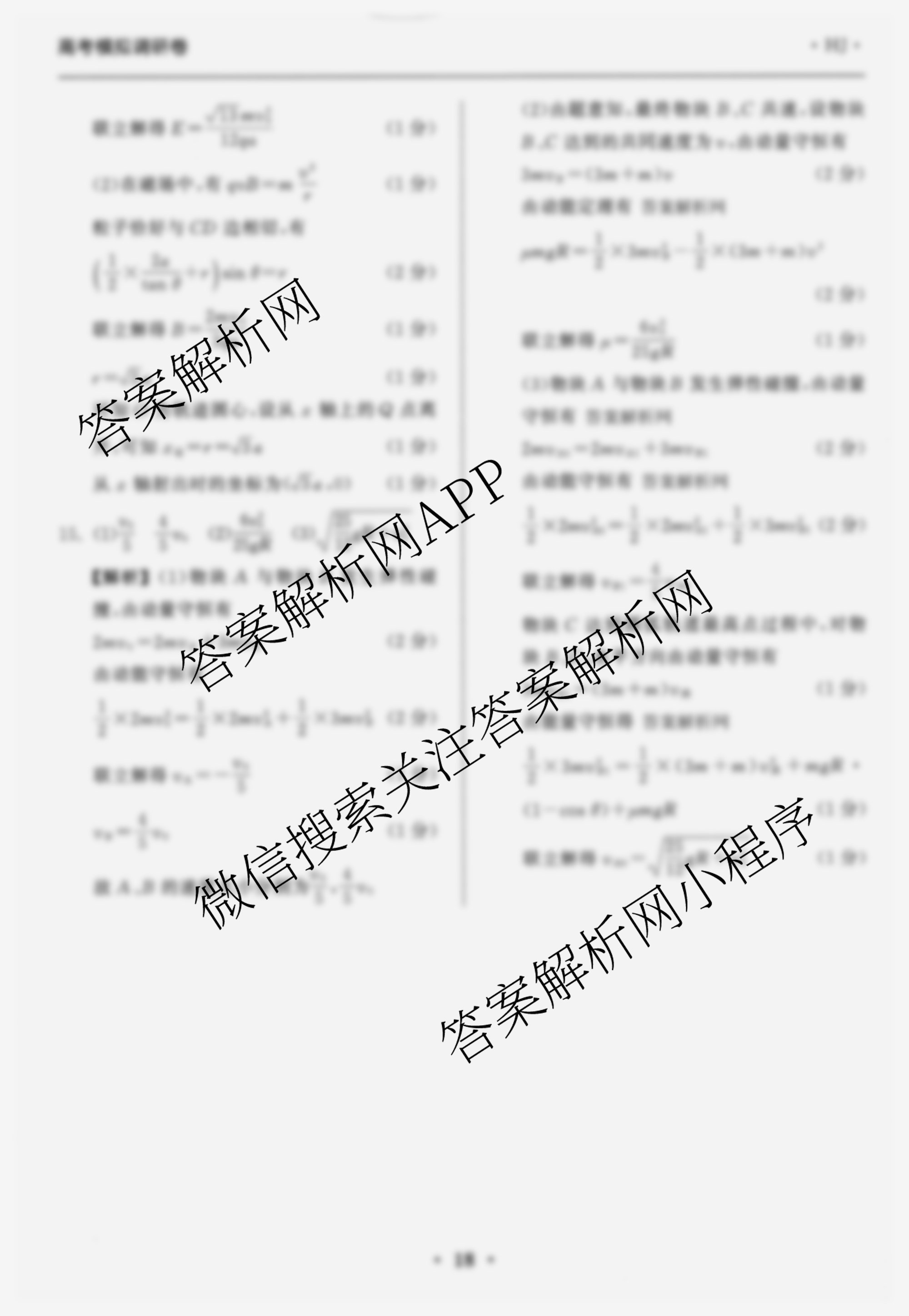 - [高三]天舟高考(衡中同卷)2026年普通高中学业水平选择性考试模拟调研卷(五)5物理(XB专版)答案