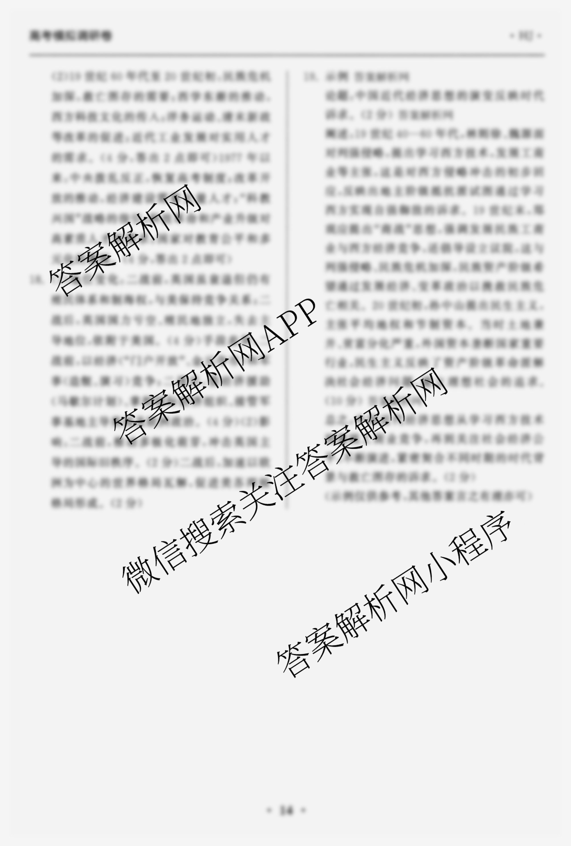 - (高三)天舟高考衡中同卷2026年普通高中学业水平选择性考试模拟调研卷(四)4历史(GY)答案