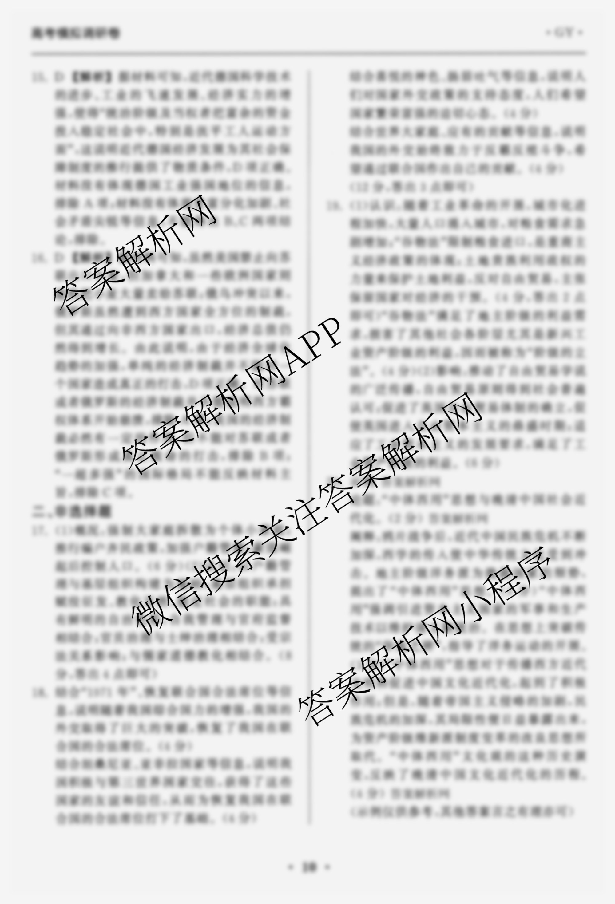 - 天舟高考[衡中同卷]·2026年普通高中学业水平选择性考试模拟调研卷(三)3历史(GY)答案